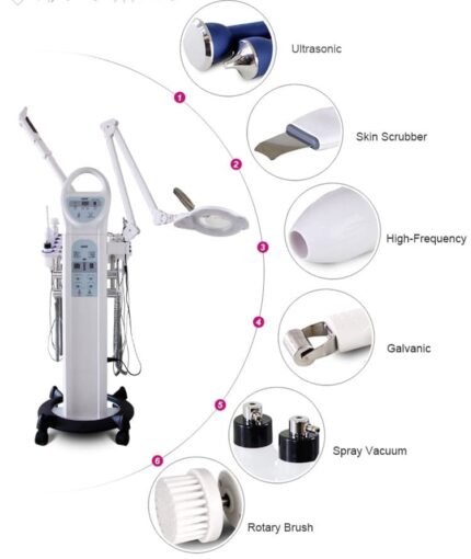 L’appareil est équipé de plusieurs pièces à main spécialisées permettant d’intervenir sur différentes zones du visage et du corps. Chaque embout est conçu pour garantir précision, hygiène et efficacité maximale.